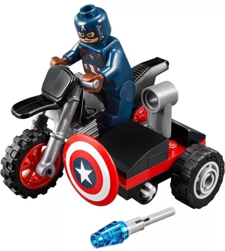 Минифигурка Капитан Америка (sh177), щит и детали для создания мотоцикла (См. фото товара выше)