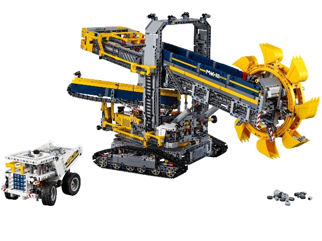 Размер таких экскаваторов настолько велик, что даже многотонные грузовики, перевозящие выкопанный грунт, по сравнению с ними кажутся муравьями, снующими вокруг грозного великана. Подобный масштаб сохранён и в наборе Лего 42055.