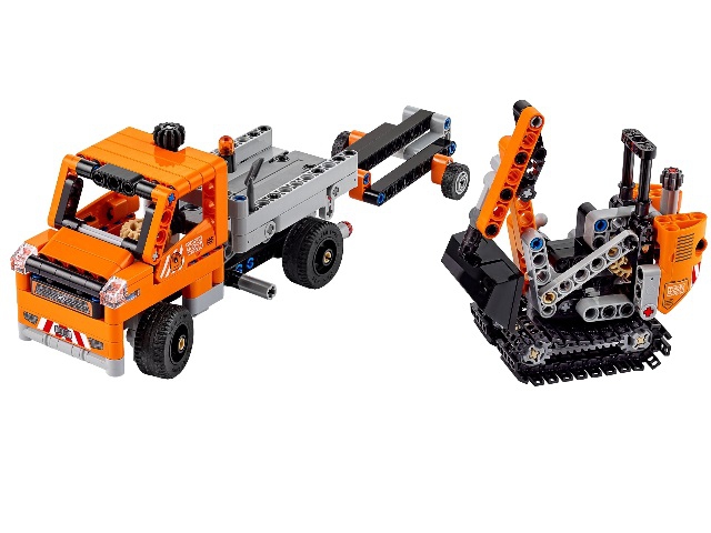Из деталей набора Лего 42060 Вы сможете собрать реалистичную и функциональную модель грузовика. Его крепкий корпус сделан в классическом серо-оранжевом цвете. Спереди устроена квадратная кабина с прочными стенками и крышей. Перед ней виден массивный капот. Он оборудован угловатыми фарами, радиаторной решёткой и усиленным бампером, защищающим от повреждений.