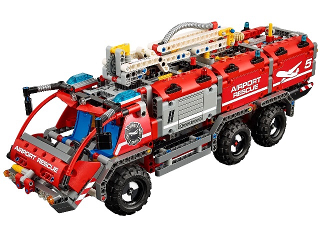 Автомобиль спасательной службы из набора Лего 42068 представляет собой мощный и проходимый грузовик. Его корпус выполнен в ярко-красном цвете, заметном издалека. Спереди располагается массивная кабина, оборудованная двумя синими креслами, рулевым управлением, приборной панелью и боковыми зеркалами. Перед кабиной виден прочный капот. На нём закреплена система освещения и брандспойт, способный менять своё положение и тушить небольшие возгорания. Отдельного внимания заслуживает крыша кабины. На ней установлены сигнальные огни и дополнительные прожекторы, которые можно включить, используя светодиоды из набора Power Functions.