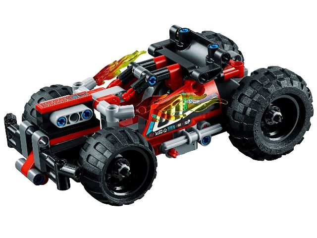 При желании его можно объединить с автомобилем из набора Лего 42072. Оба транспортных средства могут самостоятельно принимать участие в заездах или объединяться в комбо-модель (9х20х10 см) с шестью колёсами и массивным кузовом.