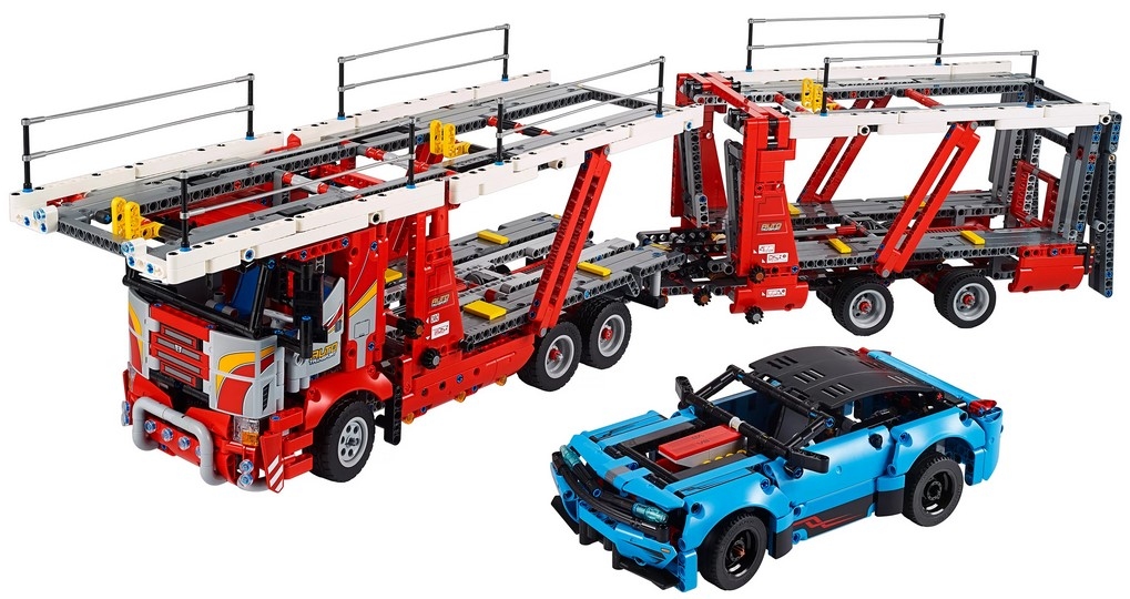 В наборе множество элементов для сборки красно-серого автовоза с реалистичными функциями. Также в него входит синяя машина, которую нужно перевезти. В этом автомобиле есть поршневый двигатель V8 и работающее рулевое управление. Его можно дополнить набором lego 42093 — Chevrolet Corvette ZR1. Цена зависит от количества деталей и функций у автомобилей. А еще автовоз можно перестроить в машины для автошоу!