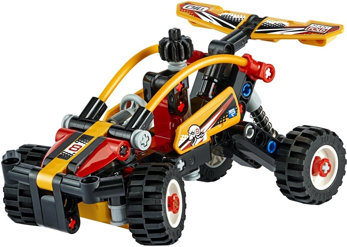 Конструктор Lego Technic Багги 42101 – это настоящий подарок для гонщиков, интересующихся основами конструирования и инженерии. Набор Лего 42101 состоит из 117 деталей, из которых легко собирается два вида транспорта: мощный багги и скоростной гоночный автомобиль. У каждой машины есть подвижное рулевое управление и оригинальные эффектные наклейки на панелях.