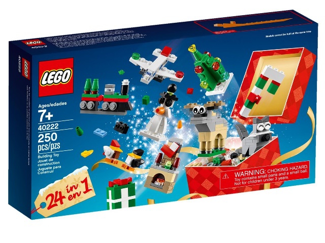 Набор 40222 станет прекрасным подарком к новогодним праздникам. Он надолго увлечёт ребёнка и позволит весело провести время. Внутри набора 250 деталей и 2 инструкции, с помощью которых можно собрать 24 мини-модели: