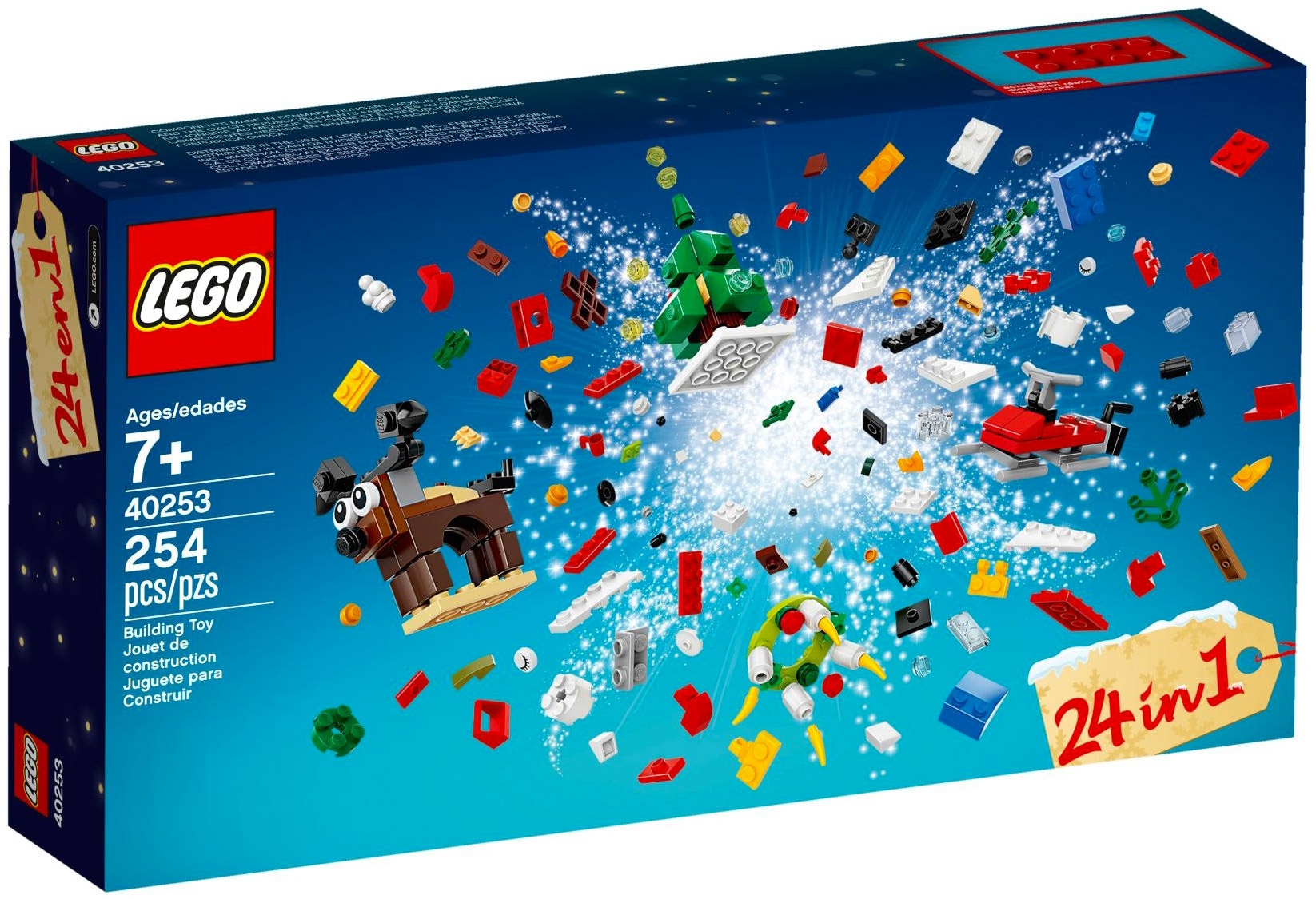 Набор Lego 40253 Новогодний календарь – это двадцать четыре небольшие постройки. Строить по одной поделке из адвент-календаря каждый день, чтобы скрасить ожидание праздников, или собрать все сразу и устроить веселую игру – выбор за вами. Здесь и павлин, и олень, Санта Клаус и новогодняя елочка, снегоход, корабль и маяк, самолет и другие животные, птицы, а также и другие мини-модели.