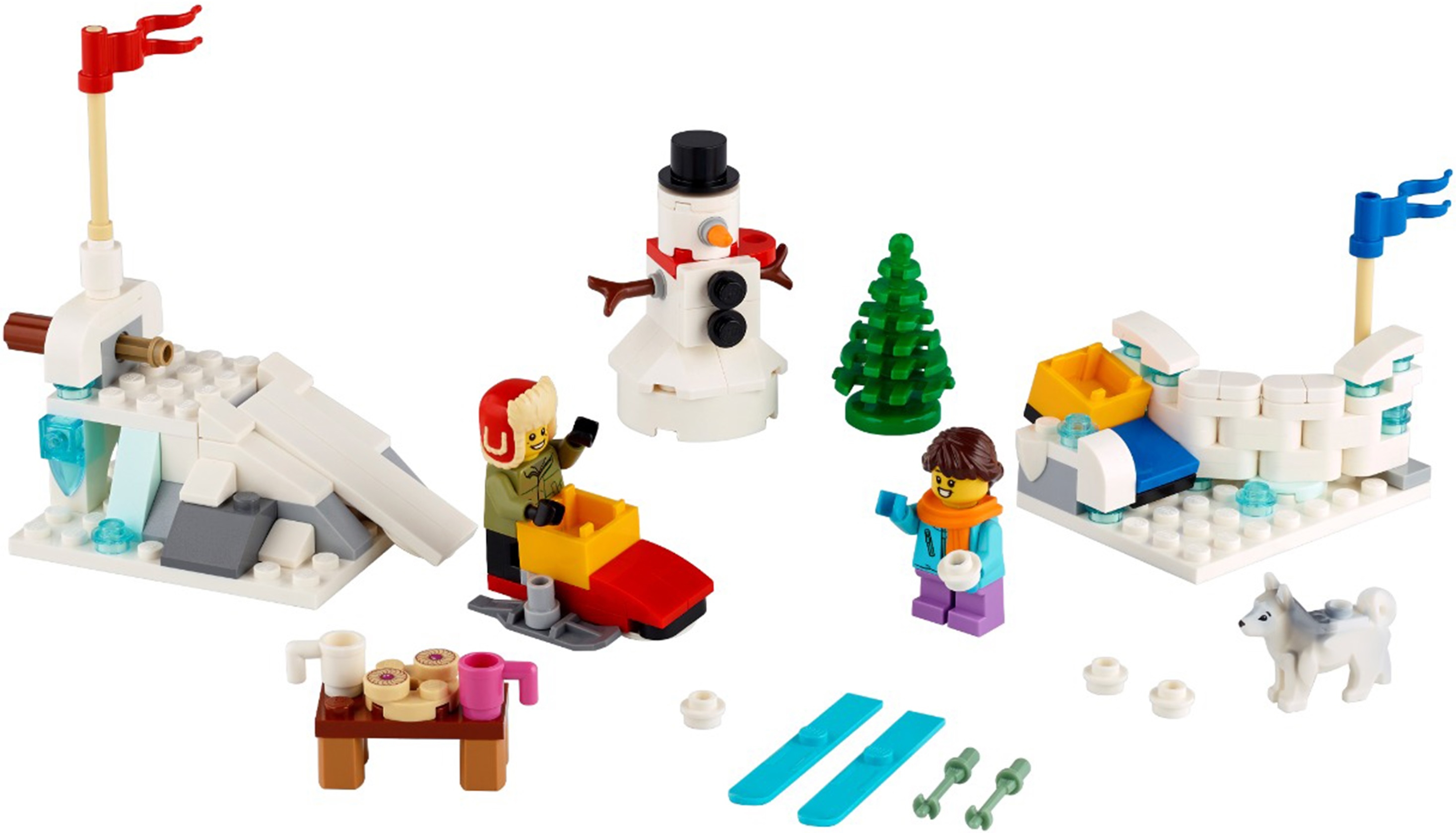 Из деталей Lego 40424 ты построишь снеговую стену, катапульту с элементами снежного кома для забрасывания противника снежками с дальней дистанции, снеговика, холм с функцией запуска саней.