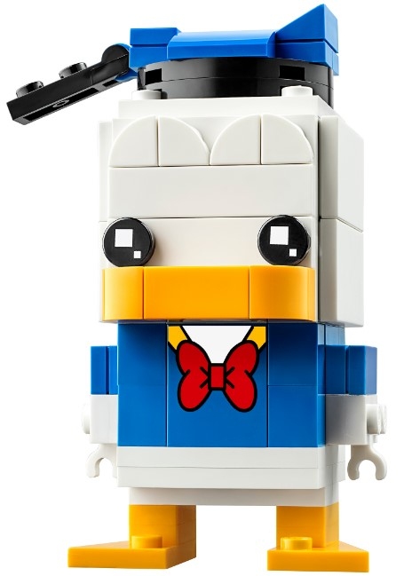 Из деталей набора Lego BrickHeadz 40377 собирается фигурка Дональда Дака, представленного в классическом образе, именно таком, в каком зрители привыкли видеть его на своих экранах. Дональд одет в свою синюю матросскую рубашку. Шею селезня украшает красный галстук-бабочка, изображение которого искусно выполнено на нагрудной пластине Lego. Спину фигурки Дональда Дака украшают деталь с изображением матросского воротника и небольшой, но вполне реалистичный утиный хвост.