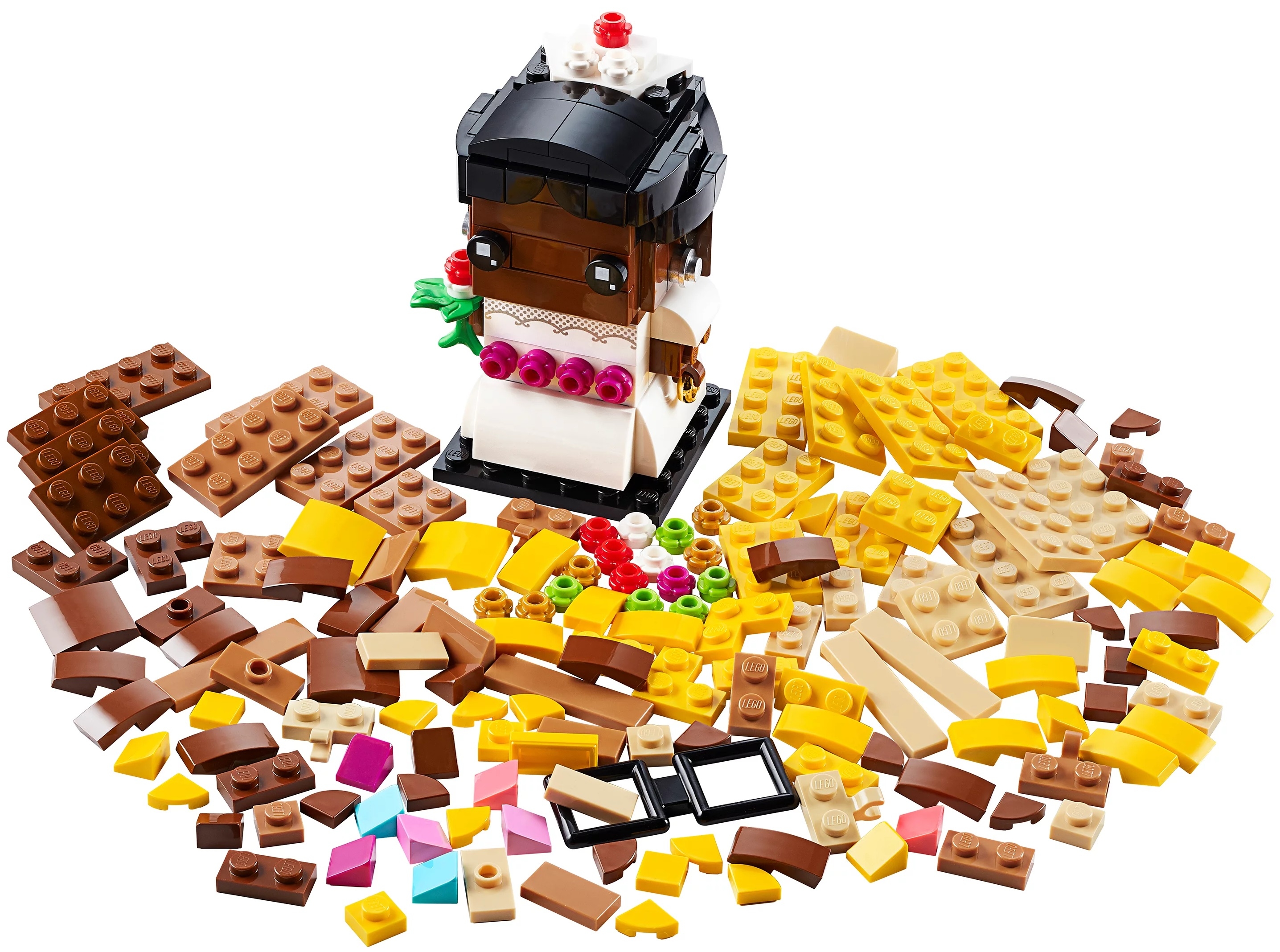 Из деталей набора Lego BrickHeadz 40383 собирается модель Невесты в элегантном свадебном платье. Основной изюминкой конструктора является то, что статуэтку можно персонализировать, максимально приблизив ее внешний вид к облику реальной невесты. Для этого в арсенале набора предусмотрено большое количество деталей различных форм и цветов, предназначенных для точного воссоздания цвета кожи и волос невесты, ее прически и декоративного украшения праздничного свадебного платья.