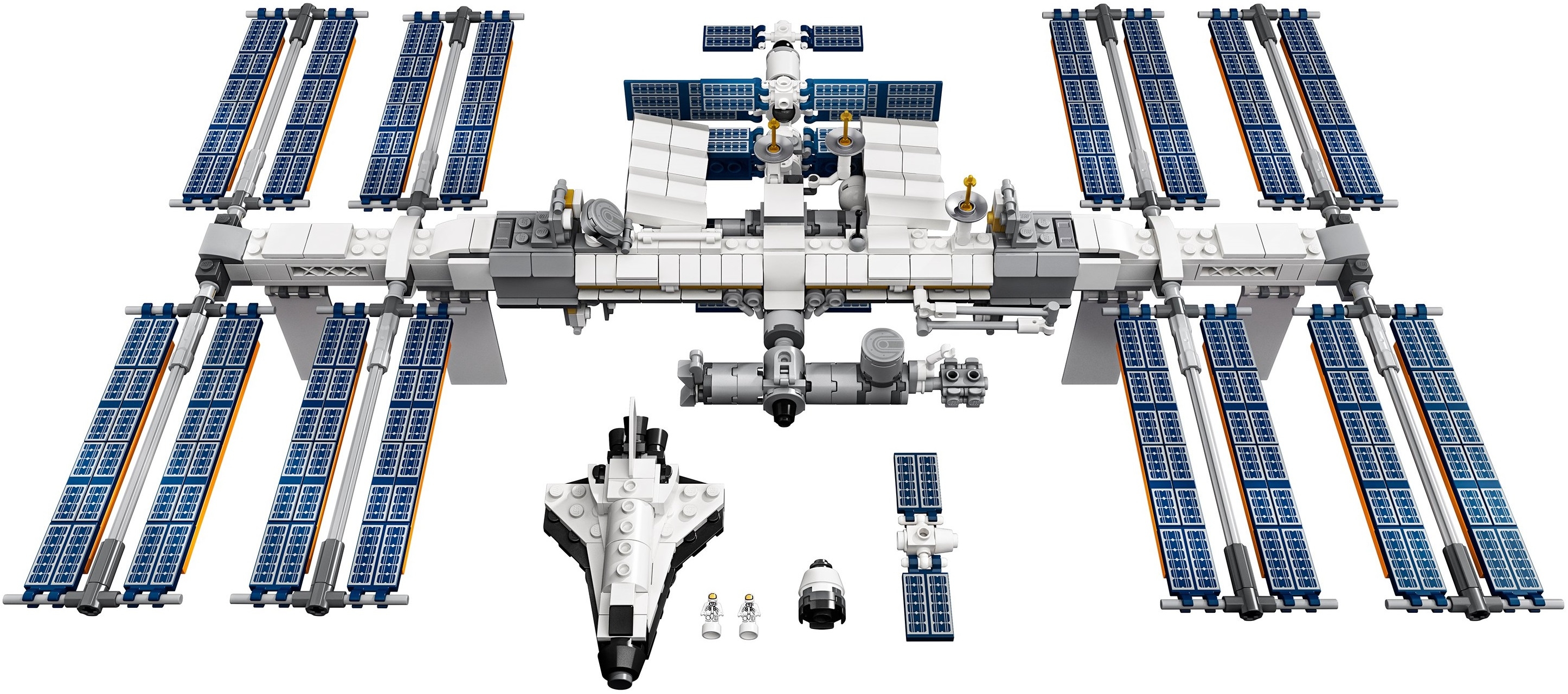Корпус модели МКС выполнен из деталей белого и серого цветов. Секции станции могут вращаться относительно друг друга. Для питания энергией станция снабжена огромным количеством солнечных панелей, изготовленных из элементов синего цвета.