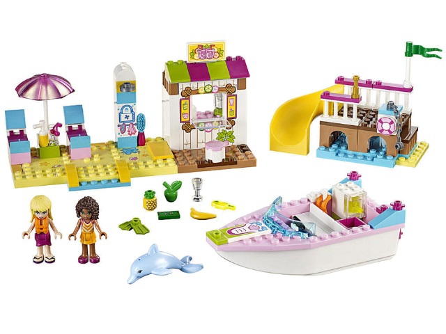 - модель катера (4х13х6 см) с декорированной палубой, штурвалом, приборной панелью, закруглённым ветровым стеклом, контейнером для хранения ласт, подставкой для спасательного жилета и холодильником с мороженым