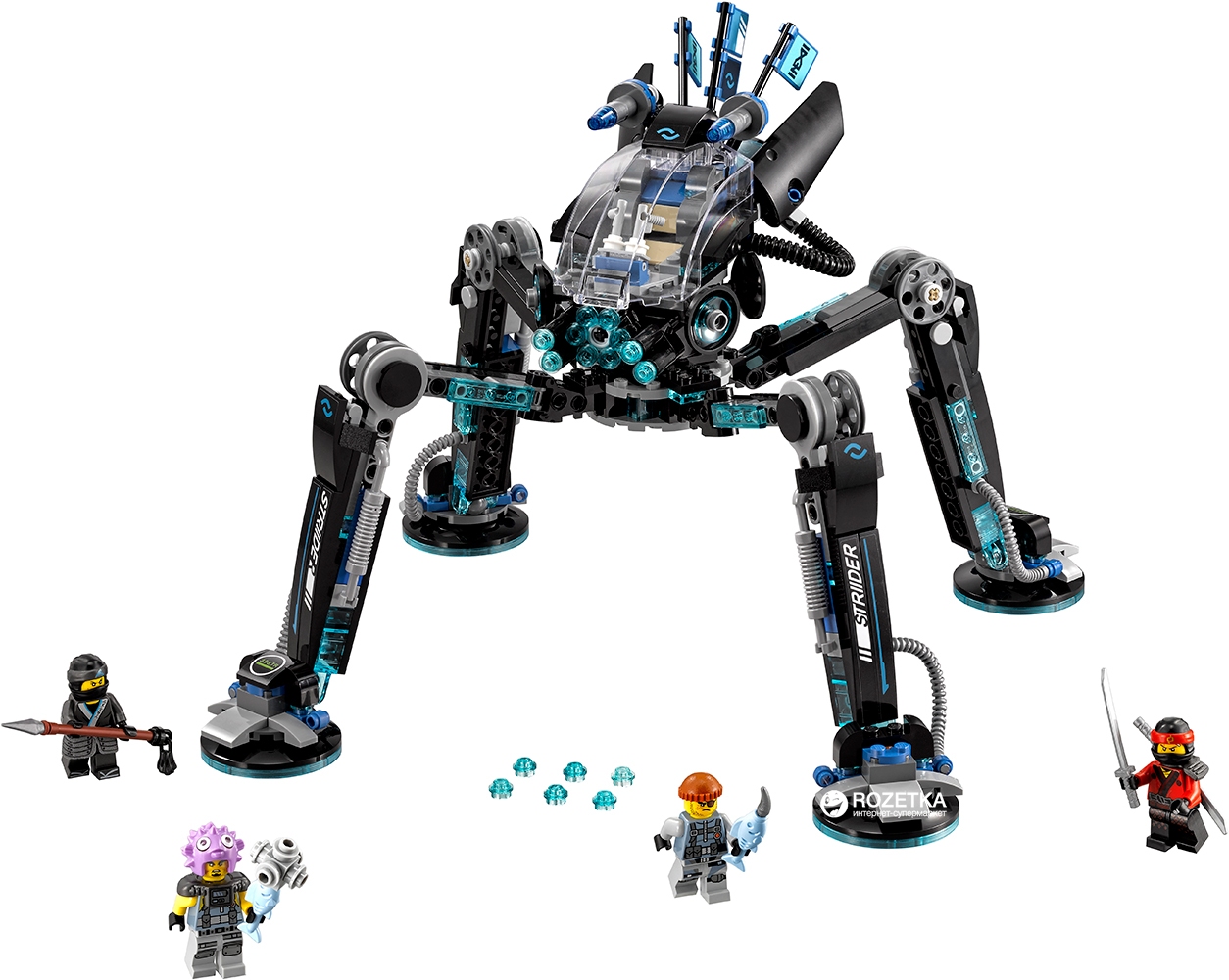Из деталей набора Лего 70611 Вы сможете собрать модель боевого робота. Его корпус выполнен из серо-чёрных элементов с добавлением голубых акцентов. Центральную часть конструкции занимает круглая площадка. Она служит местом прикрепления четырёх идентичных конечностей и кабины. Благодаря мобильному основанию, кабина способна вращаться вокруг совей оси, что даёт максимальный обзор и не оставляет лазутчикам Гармадона ни единого шанса.