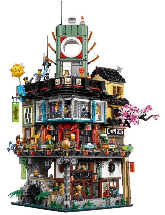Ниндзяго Сити из набора Лего 70620 представляет собой трёхуровневый город, в котором всегда шумно и весело. Горожане спешат по своим повседневным делам. Им нужно успеть посетить множество магазином, заглянуть на рыбный рынок, уделить время своим хобби и поболтать с друзьями за чашечкой ароматного чая. Лишь в выходные дни можно никуда не торопиться, и, удобно устроившись в суши-баре, насладиться панорамным видом на город и его окрестности.