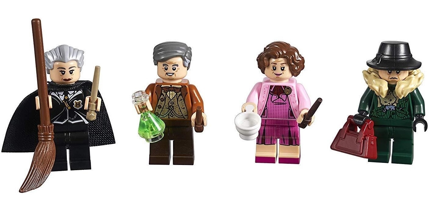 Долорес Амбридж – хоть и занимала пост директора совсем непродолжительное время, но успела установить в Хогвартсе тоталитарный режим, чем настроила против себя как учеников школы, так и преподавателей. Фигурка облачена в розовые одеяния, а ее грудь украшает брошь с изображением кошки, что подчеркивает любовь Долорес к этим животным. У головы два выражения лица: одно – улыбающиеся, а второе – злое. В руках у минифигурки белая чашка и волшебная палочка.