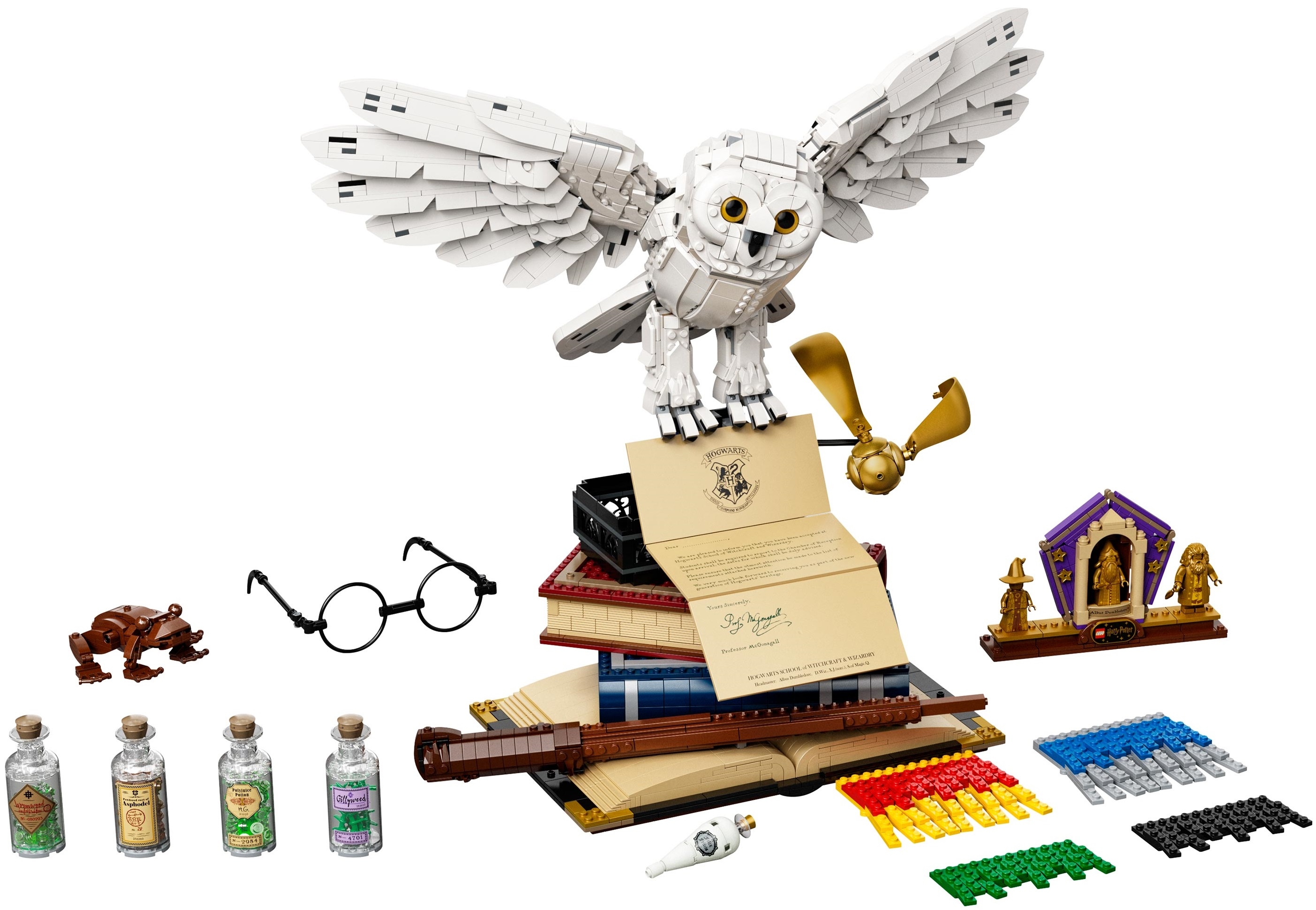 Из деталей Lego Harry Potter 76391 ты сможешь собрать шарф ученика Хогвартса, причем, оформить его в цветах каждого из факультетов. Собери белоснежную красавицу-сову Буклю, которая держит в когтях уже открытое письмо с приглашением Гарри в Хогвартс. Расположи Буклю наверху экспозиции — и можешь показывать свою выставку Поттеромана друзьям.