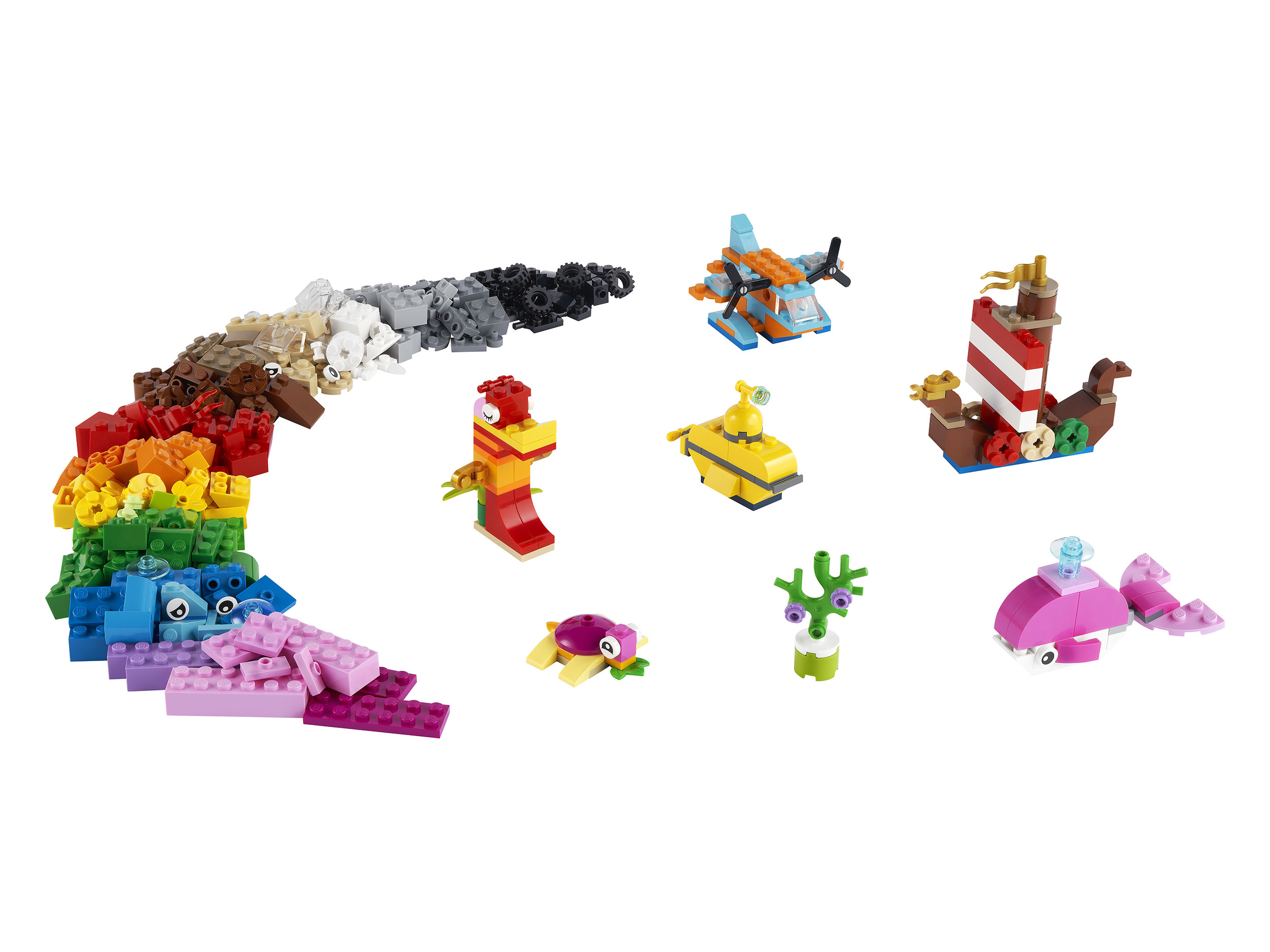 Набор Lego 11018 станет прекрасным подарком для всех, кто любит весело проводить время, сооружая и придумывая интересные конструкции. Соберите собственные модели морских животных или транспорта, и отправляйтесь в увлекательный мир приключения и игр, который обязательно подарит массу приятных впечатлений. Благодаря возможности собрать большое количество поделок, в набор будет интересно играть не только одному, но и в компании близких друзей.