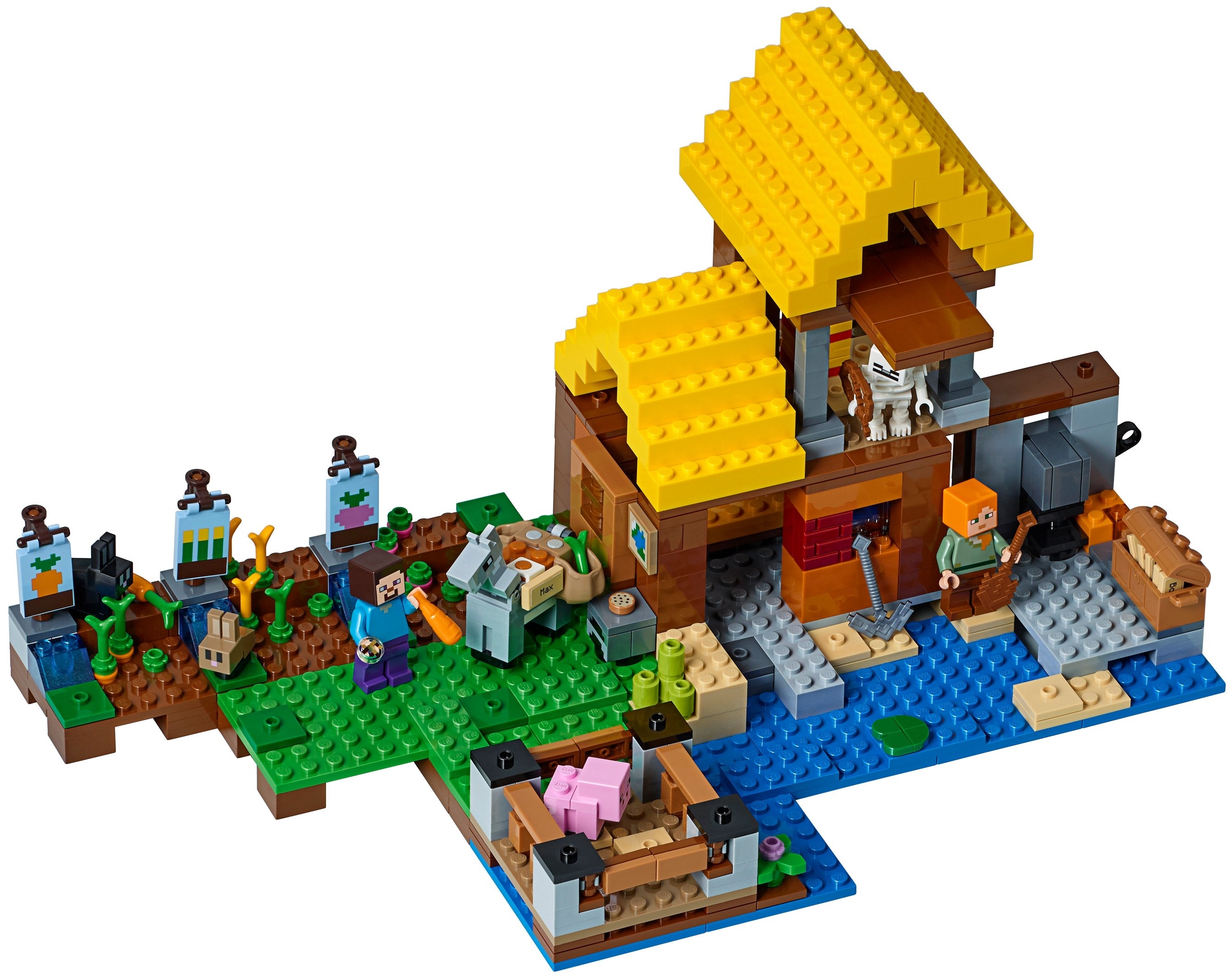 Стив и Алекс решили заняться фермерством. Для этого они выбрали живописный участок на берегу озера. Свежий воздух и плодородная почва прекрасно подошли для создания огорода. Сформировав грядки и расставив таблички, друзья начали сажать семена. Пшеница, морковь и свёкла взошли очень быстро. Когда урожай поспел, герои задумались о домашних животных. С помощью сладкой морковки они приманили поросёнка и поселили его в бревенчатом загоне. Пшеница пришлась по вкусу ослу, и тот стал верным помощником, перевозящим фермерский инвентарь. Кролики тоже почуяли запах созревших овощей и сами прибежали на грядку. Приручать их не понадобилось, хотя хлопот они доставили достаточно. Убегая из вольера, пушистики так и норовили первыми добраться до огорода и попробовать всё, что на нём выросло.