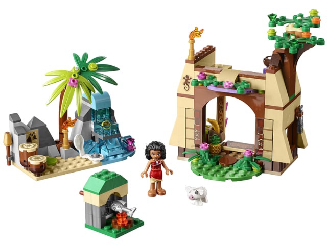 Из деталей набора Лего 41149 Вы сможете построить подробную модель хижины Моаны. Снаружи она окружена экзотическими цветами и густыми зелёными ветками. Пройдя через арочный деревянный вход, можно очутиться внутри и рассмотреть интерьер. На первом этаже располагается просторная комната с ковром, круглым столом и скамейкой. Здесь Монана хранит запас фруктов и отдыхает после долгих прогулок по пляжу.