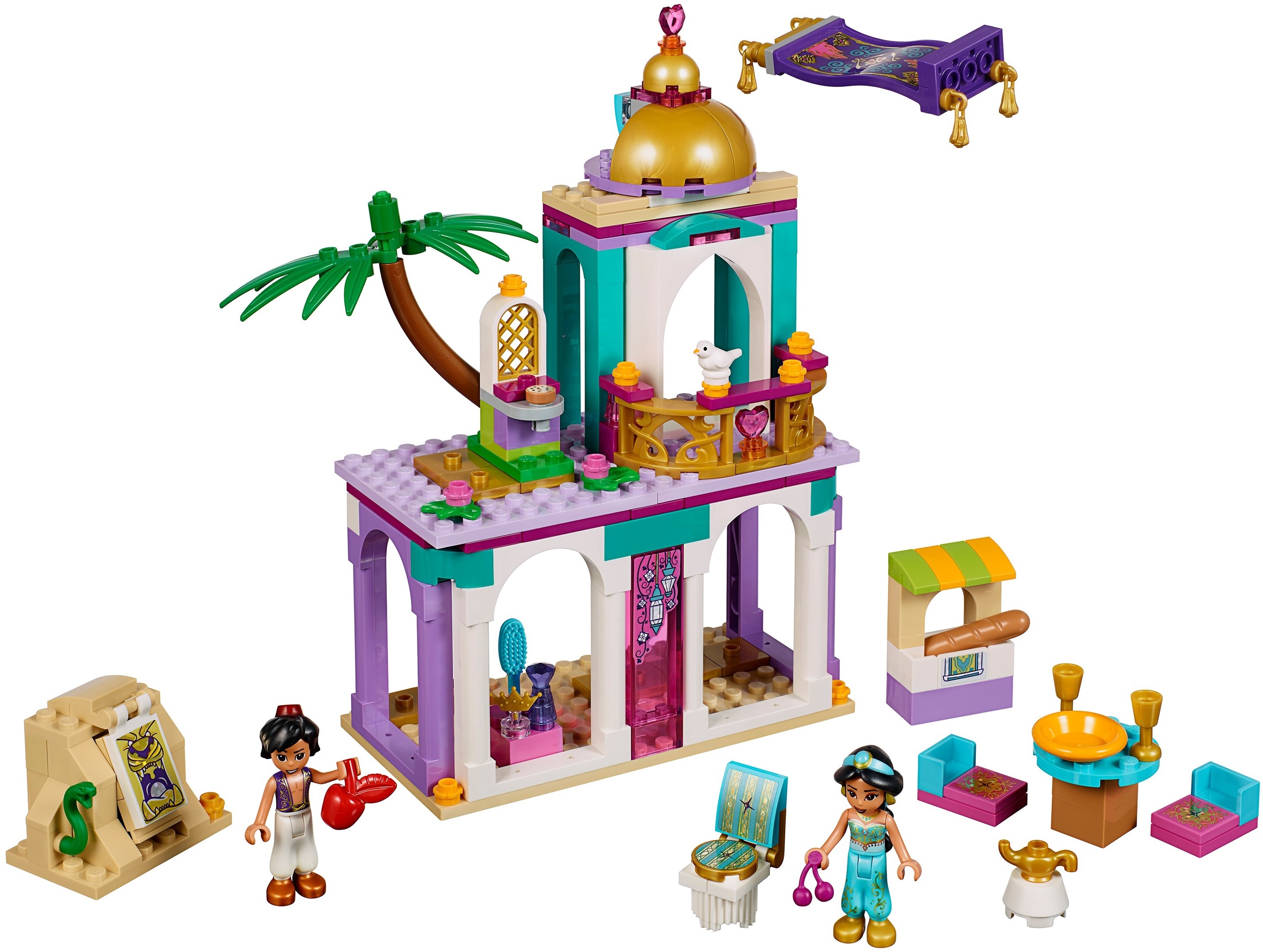 Крыша дворца lego Disney 41161 выполнена в форме купола, в котором прячется специальный механизм. С его помощью Аладдин и Жасмин могут летать на волшебном ковре-самолете.