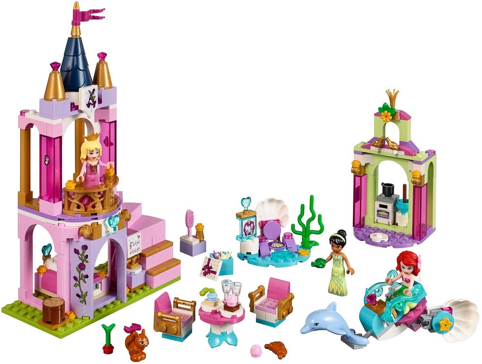 Аврора, Тиана и Ариэль из набора lego Disney Princess 41162 устраивают большой праздник. Тебя ждут катания на колеснице Ариэль, вкуснейшие пирожные Тианы и танцы в замке Авроры.