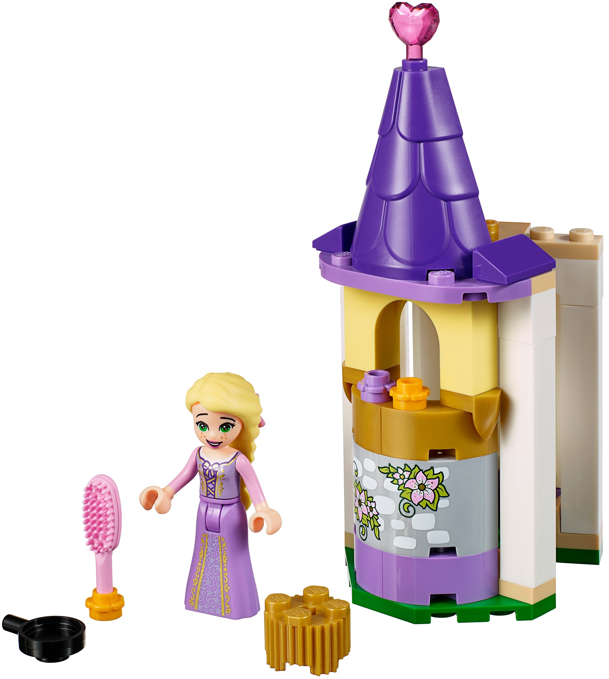 Из деталей конструктора лего 41163 собирается башня с небольшим окошком и фиолетовой крышей. Распашная конструкция башенки позволяет разместить принцессу и ее аксессуары внутри, чтобы разыграть сценки из мультфильма Disney или придумать собственные сюжеты.