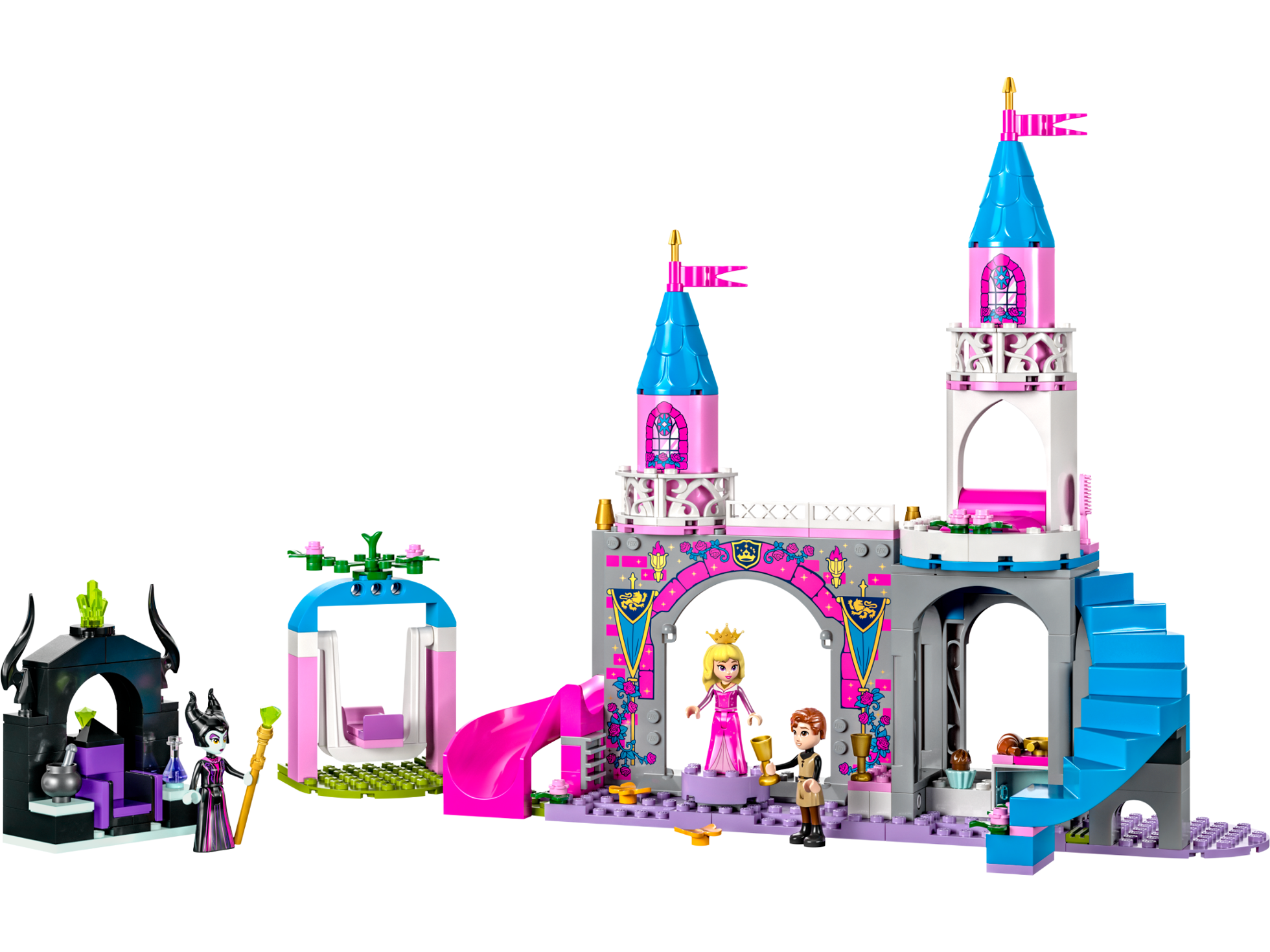 В комплект Lego 43211 входят 3 минифигурки: принцесса Аврора, принц Филипп и злая волшебница Малефисента.