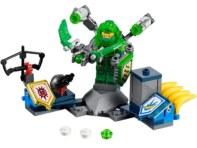 В наборе присутствует минифигурка Аарона с бронёй и арбалетом, а также 3 щита для сканирования с НЕКСО Силами, 2 пушки, 2 вида боеприпасов, 4 банановых бомбы, кейс для хранения, шлем с очками и лук.