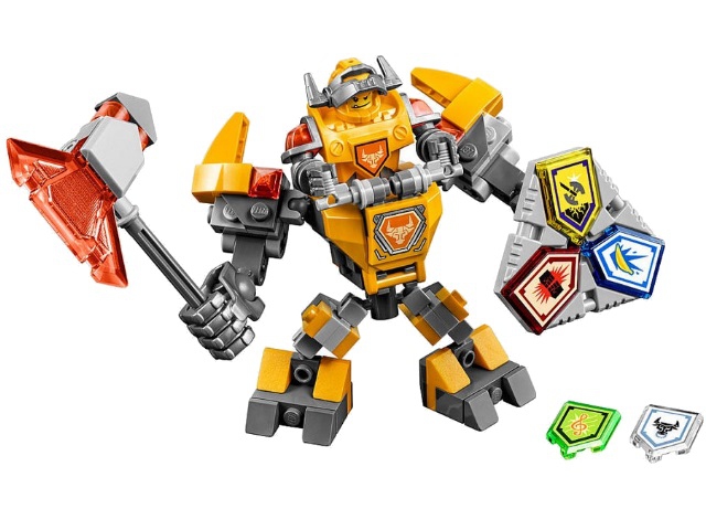 Из деталей набора Лего 70365 Вы сможете создать новые боевые доспехи Аксела. Внешне они напоминают высокотехнологичную машину для сражений, созданную из контрастных, жёлто-серых элементов. В верхней части доспехов устроена ниша для минифигурки. Опустив бронированную нагрудную пластину, можно разместить Акселя внутри и доверить ему управление всеми механизмами. Во время боя он сможет принимать множество боевых поз, уверенно держать равновесие, наносить удары топором или раскидывать противников огромными кулаками.