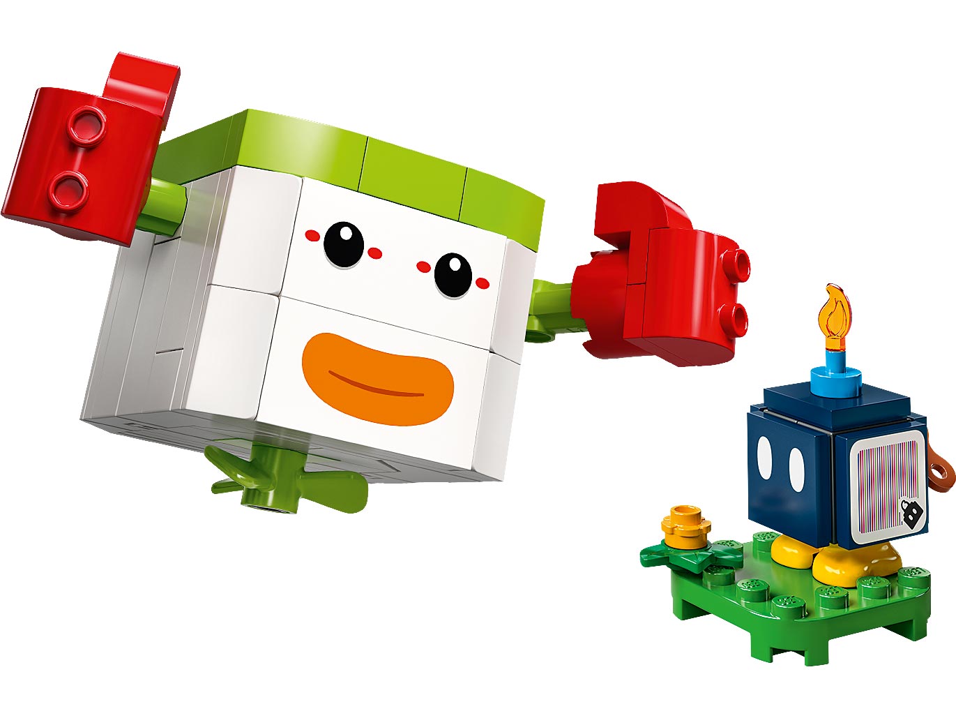 В набор Lego 71396 также входит враг Марио и Луиджи — Боб-омб, движущаяся бомба. Добавляй ее к уровням, построенным из кубиков. У Боб-омба есть глаза, сзади расположен заводной ключ, а сверху — огонек. Вспомни, в игре он преследует персонажей, а потом взрывается, повреждая всё вокруг. Поэтому лучше держаться от него подальше. У него есть уникальный штрих-код, поэтому ты сможешь добавить Боб-омба на уровень. Просканируй его, чтобы запустить функцию взрыва и заработать монету!