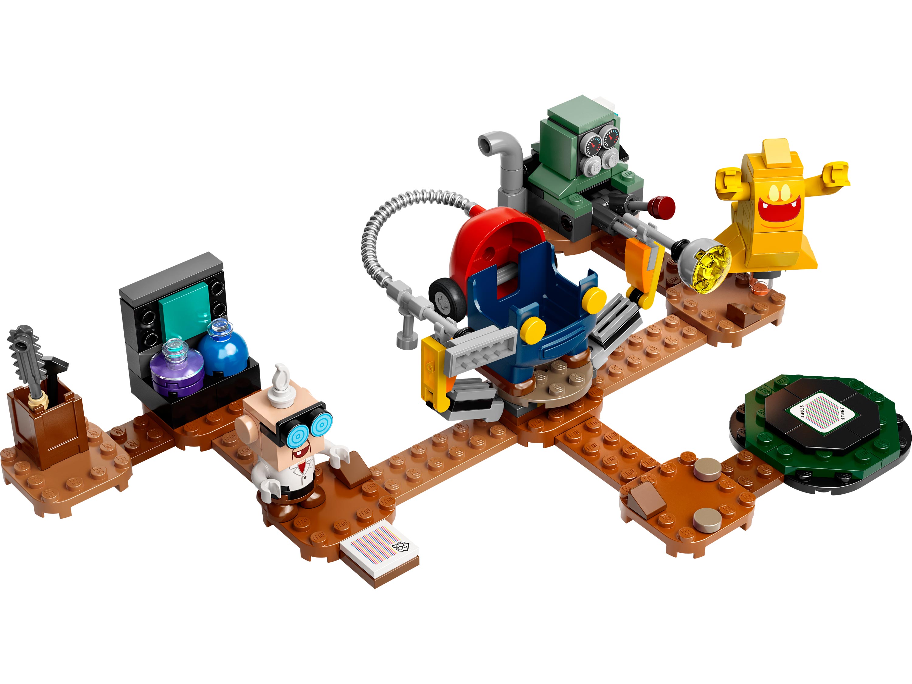 Дополнительный набор Лего 71397 «Лаборатория Луиджи. Отлов привидений» с лабораторным лабиринтом, пробирками и флаконами с ядом и противоядием в комплекте. В конструктор Lego входит две минифигурки с уникальным костюмом с эктобластом.