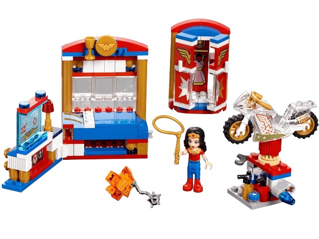 Из деталей набора Лего 41235 Вы сможете построить дом Чудо-женщины, разделённый на несколько комнат. В одной из них устроена ремонтная мастерская. Здесь на высоком подиуме супергероиня занимается починкой своего любимого мотоцикла-невидимки. Делать это очень легко, так как в основании подиума заложен вращающийся механизм, позволяющий осмотреть транспортное средство со всех сторон.