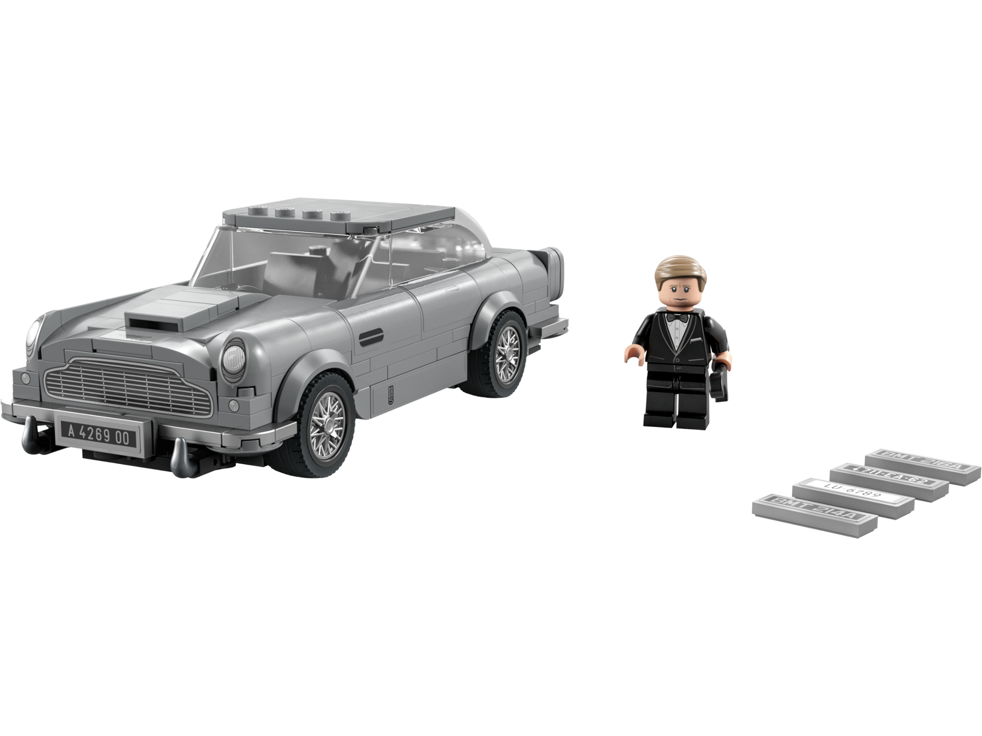 Знаменитый автомобиль Aston Martin DB5 агента 007 и фигурку Джеймса Бонда, показанных в фильме “Не время умирать”, можно собрать из Lego 76911 серии Speed Champions.